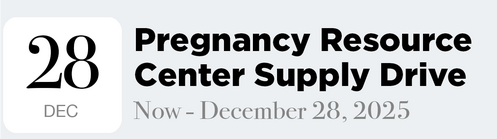 We’re coming together as a church family this Christmas season to bless Pregnancy Resource Center with supplies for their Baby Boutiques! PRC serves thousands of women and families each year through their clinics, boutiques, counseling, and education. For more info, click the link for their wishlist and drop off donated items in the lobby by Sunday, December 28th!
